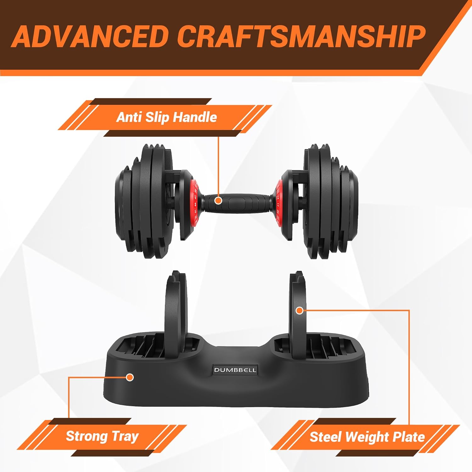 【Double Self-Locking Safety Design】This adjustable dumbell must be rotated on the base to adjust the weight. The safety double locking mechanism automatically locks the bell blade when lifting the dumbbell, preventing it from sliding/falling off during the lifting process. Provides higher security and stability during use.