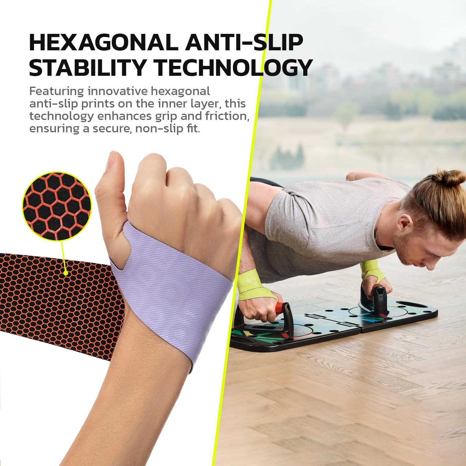 [Hexagonal Anti-Slip Stability Technology] Featuring innovative hexagonal anti-slip prints on the inner surface, this technology enhances grip and friction, ensuring a secure, non-slip fit. Perfect for activities such as yoga, Pilates, light workouts, and daily tasks, this wrist brace stabilizes wrist posture, reduces strain, and provides a safer, more comfortable movement experience. Ideal for all-day wear without the risk of slippage.