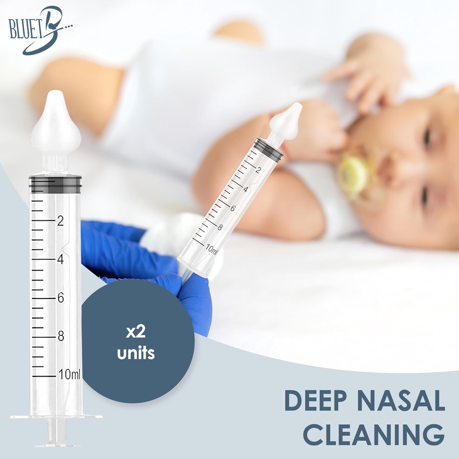 Llevamos usando este pack de dos jeringuillas nasales con nuestro bebé de 6 meses y nos ha encantado. La capacidad generosa permite un lavado eficaz sin tener que repetir demasiado y, lo más importante, la punta de silicona es realmente blandita, suaviza el contacto con las fosas nasales y evita cualquier roce molesto o dolor, algo fundamental cuando el bebé se mueve.Compramos dos packs y ambos cumplen perfectamente: son fáciles de montar y desmontar para limpiarlos y muy útiles para los días que el bebé está congestionado. La limpieza es sencilla, lo puedes lavar a fondo sin complicaciones y los materiales se ven de buena calidad.Ventajas principales:• Gran capacidad para lavados efectivos.• Punta de silicona blanda y segura, ideal para bebés inquietos.• Pack de dos jeringuillas, siempre tienes una limpia disponible.• Materiales reutilizables y fáciles de limpiar.Posible pega: las medidas impresas pueden borrarse con el uso frecuente, aunque no afecta a su funcionamiento.En conclusión: si buscas una solución segura, eficaz y cómoda para los lavados nasales de tu bebé, este pack es una excelente elección. Nosotros volveríamos a comprar sin dudarlo.
