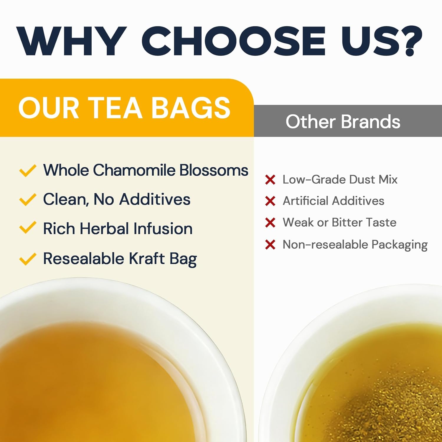 【Easy & Convenient】Individually portioned chamomile tea bags in a resealable pack keep the tea fresh and flavorful until opened. Perfect for home, office, or on-the-go, just steep one bag for a comforting cup anytime.