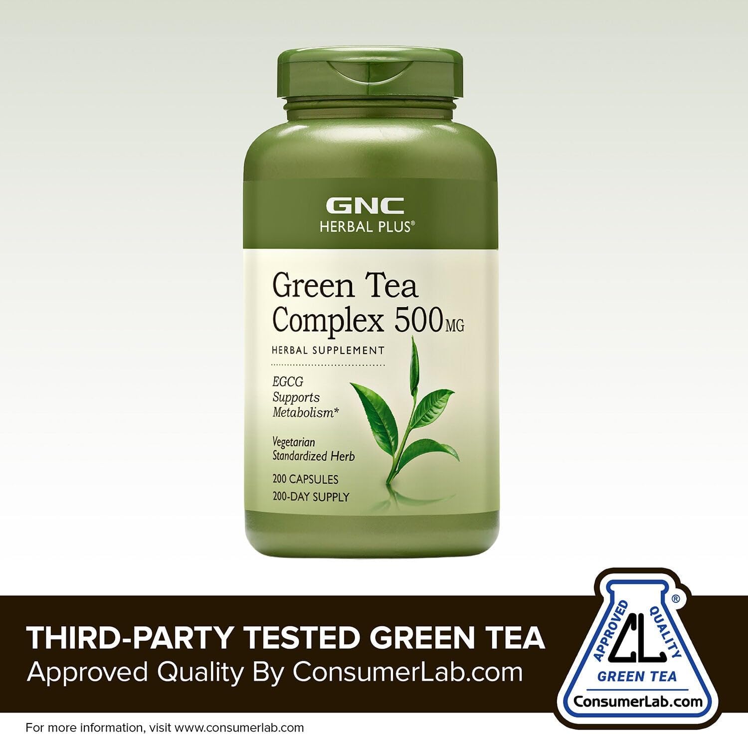 GNC Herbal Plus Green Tea Complex 500mg Supplement, Vegetarian, Supports Metabolism, 200 Servings