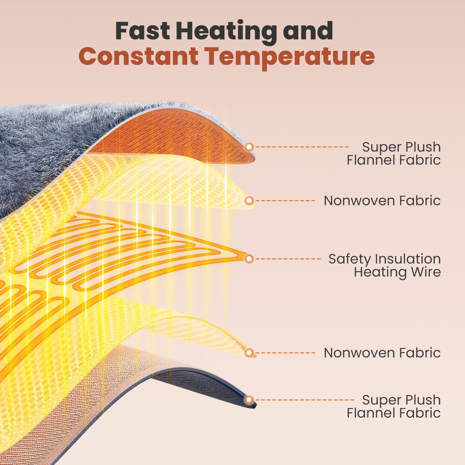 2 Hours Auto-Off: Double safety insurance and user-friendly design. So you can enjoy the soothing warmth completely without safety concerns.