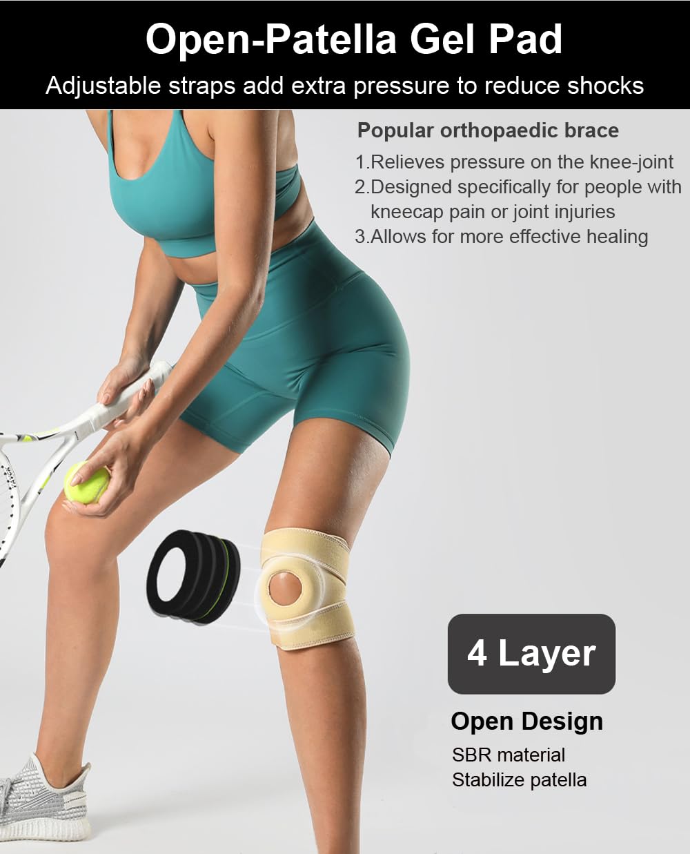 Open knee brace on the kneecap, designed specifically for people with kneecap pain or joint injuries.