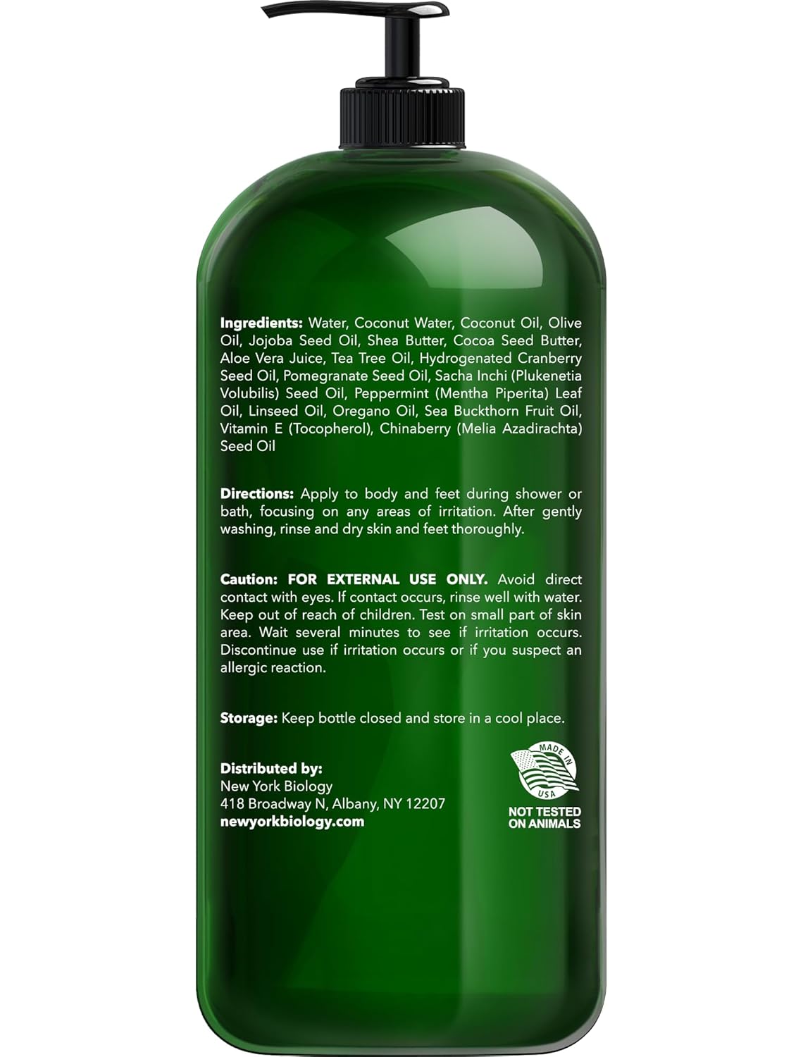 New York Biology Tea Tree Body Wash for Men and Women – Moisturizing Body Wash Helps Soothe the Skin – Refreshing and Hydrating Cleanser for Body and Feet – 16.9 Fl Oz