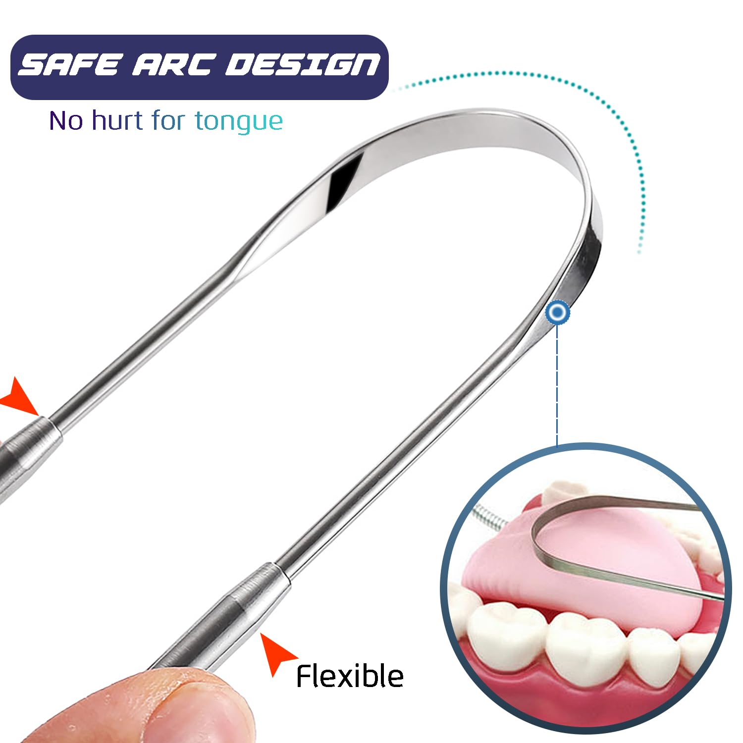1.Gentle Yet Effective: The U-shaped edge glides smoothly across the tongue, scraping away food debris without hurtting sensitive taste buds.