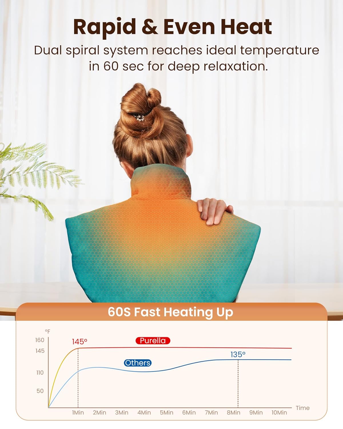 6 Heat Levels and 4 Timer Options: Customize your experience with 6 temperature settings (107℉–145℉) and 4 auto-off timers (30, 60, 90, or 120 minutes). Find your perfect warmth from gentle to deep heat. Fits easily into your daily relaxation.